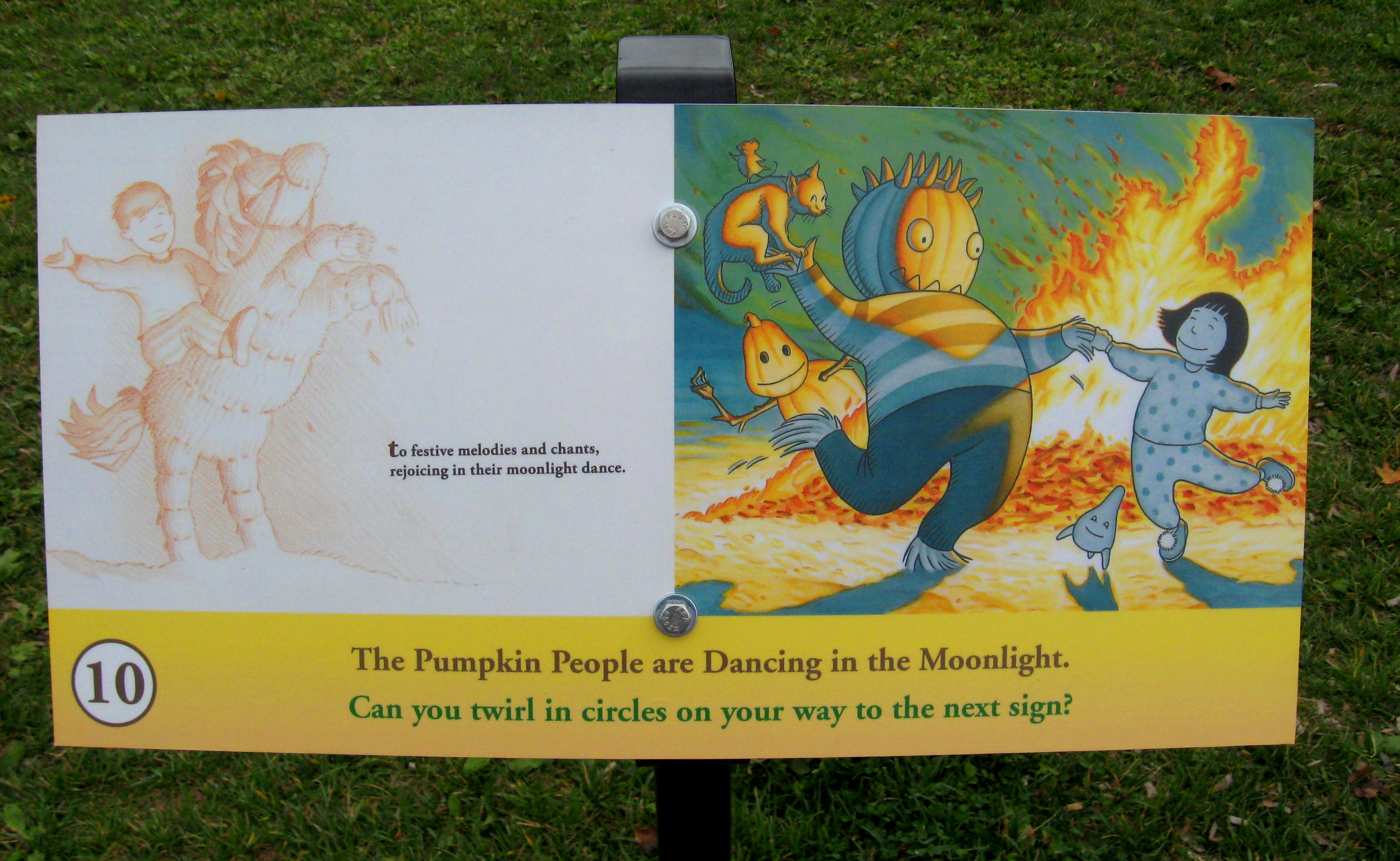 Under each page of the book is a description of a physical activity that leads the reader to the next sign. When it comes to Pumpkin People, we talk the talk AND walk the walk!