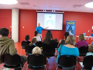 Ron had a great day at The Word On The Street Halifax reading FRANKENSTINK! Garbage Gone Bad and Pumpkin People. The new Halifax Central Library was a perfect venue for this fabulous literary festival! Many thanks to the Dartmouth Learning Network volunteers, Halifax Central Library staff and Woozles Books for their kind assistance. We had wonderful food at the PAVIA Gallery – Espresso Bar & Cafe on the top floor of the library with panoramic views of the city skyline and harbour.